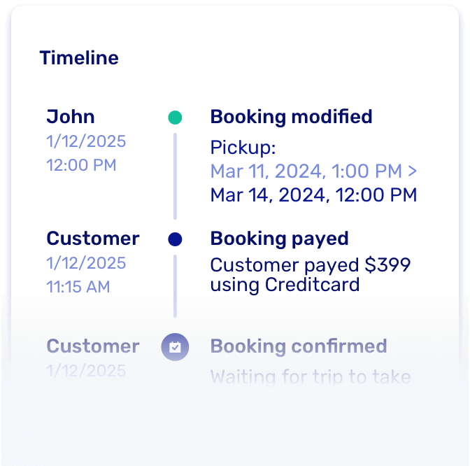 At the booking detail level, there's now a timeline where you can see all the activity related to a booking. This allows you to track who made which changes and when.